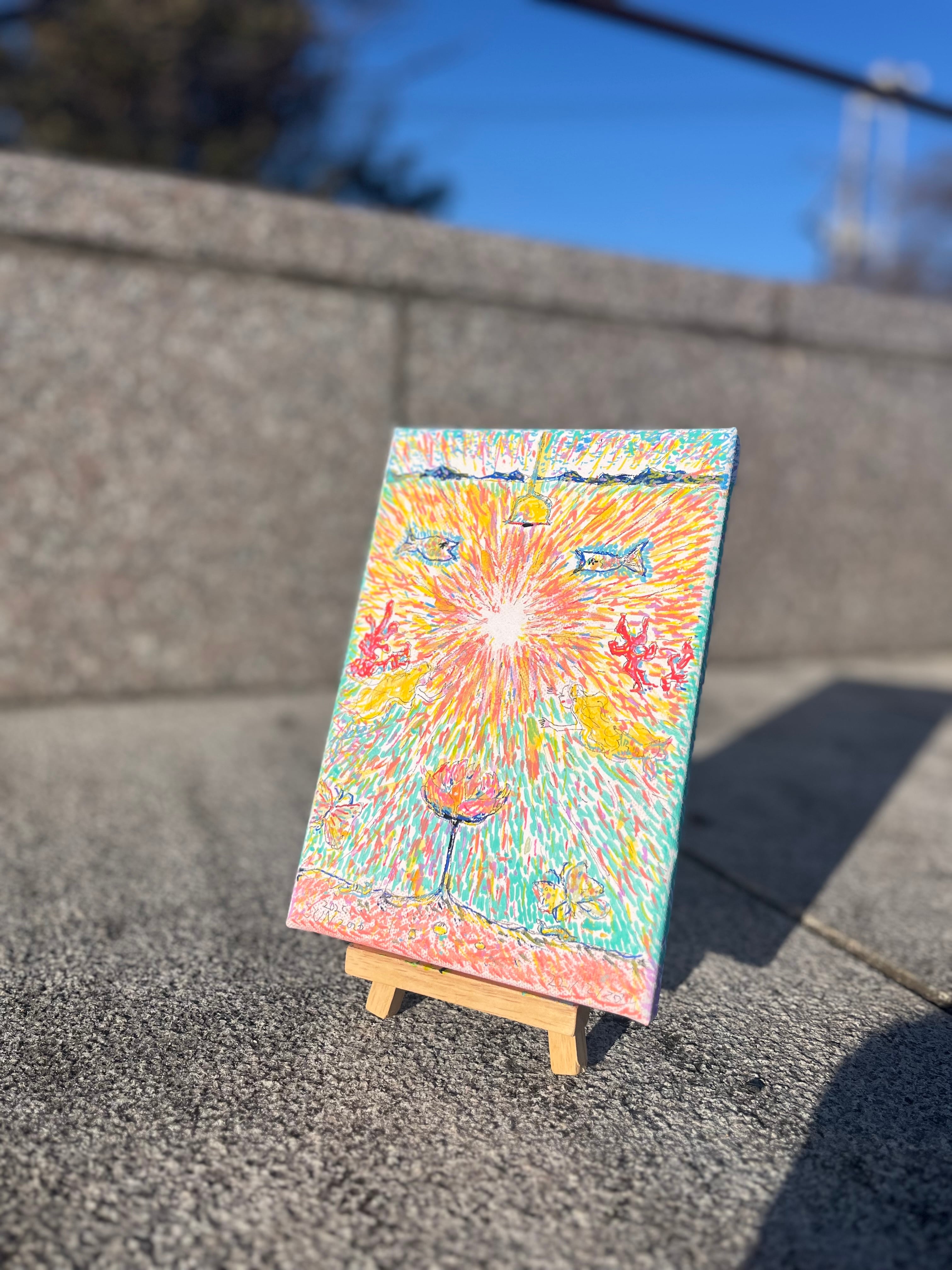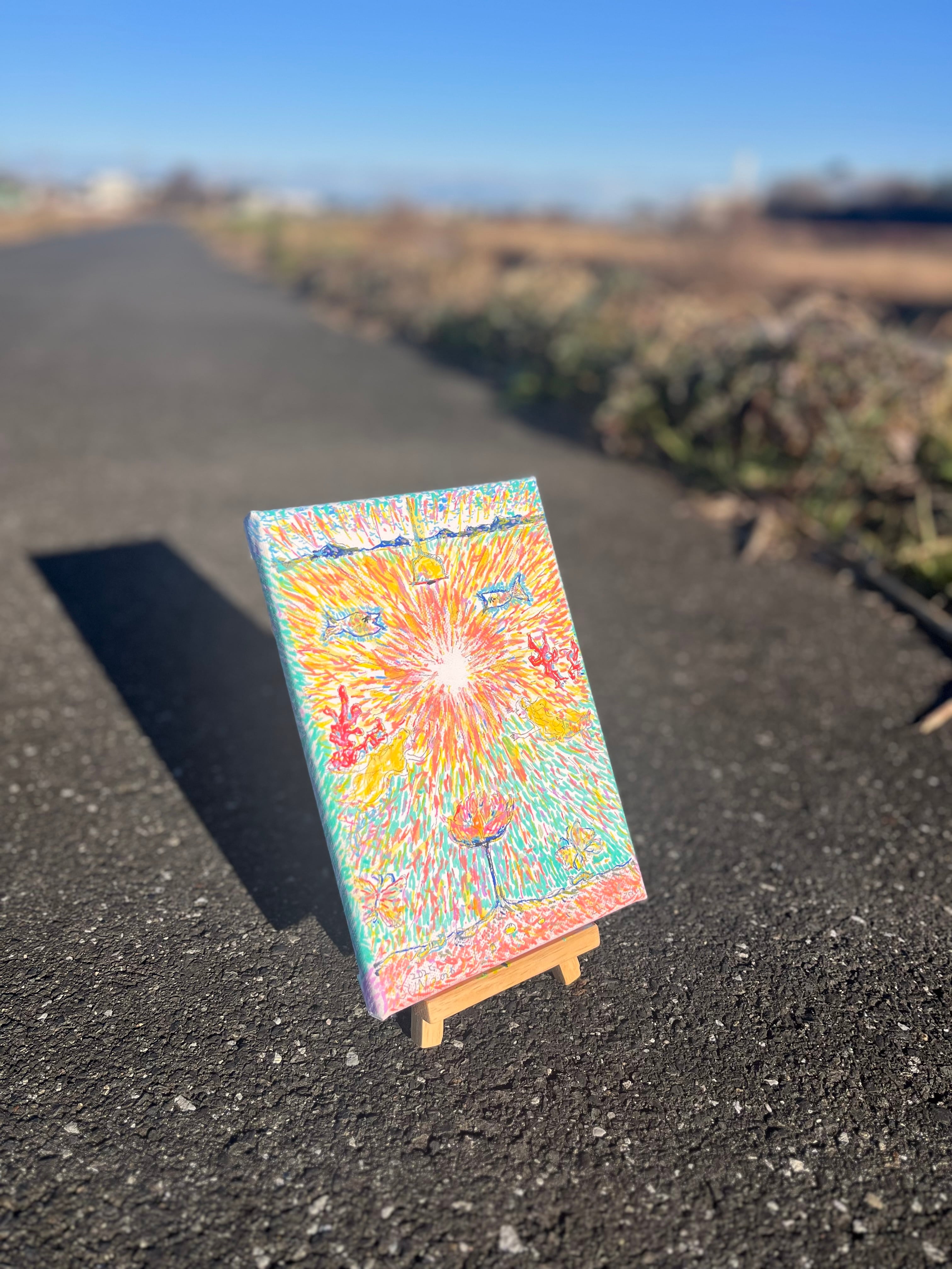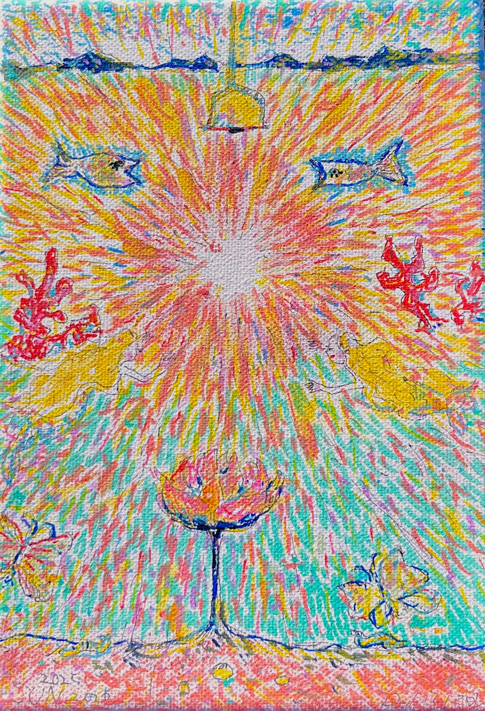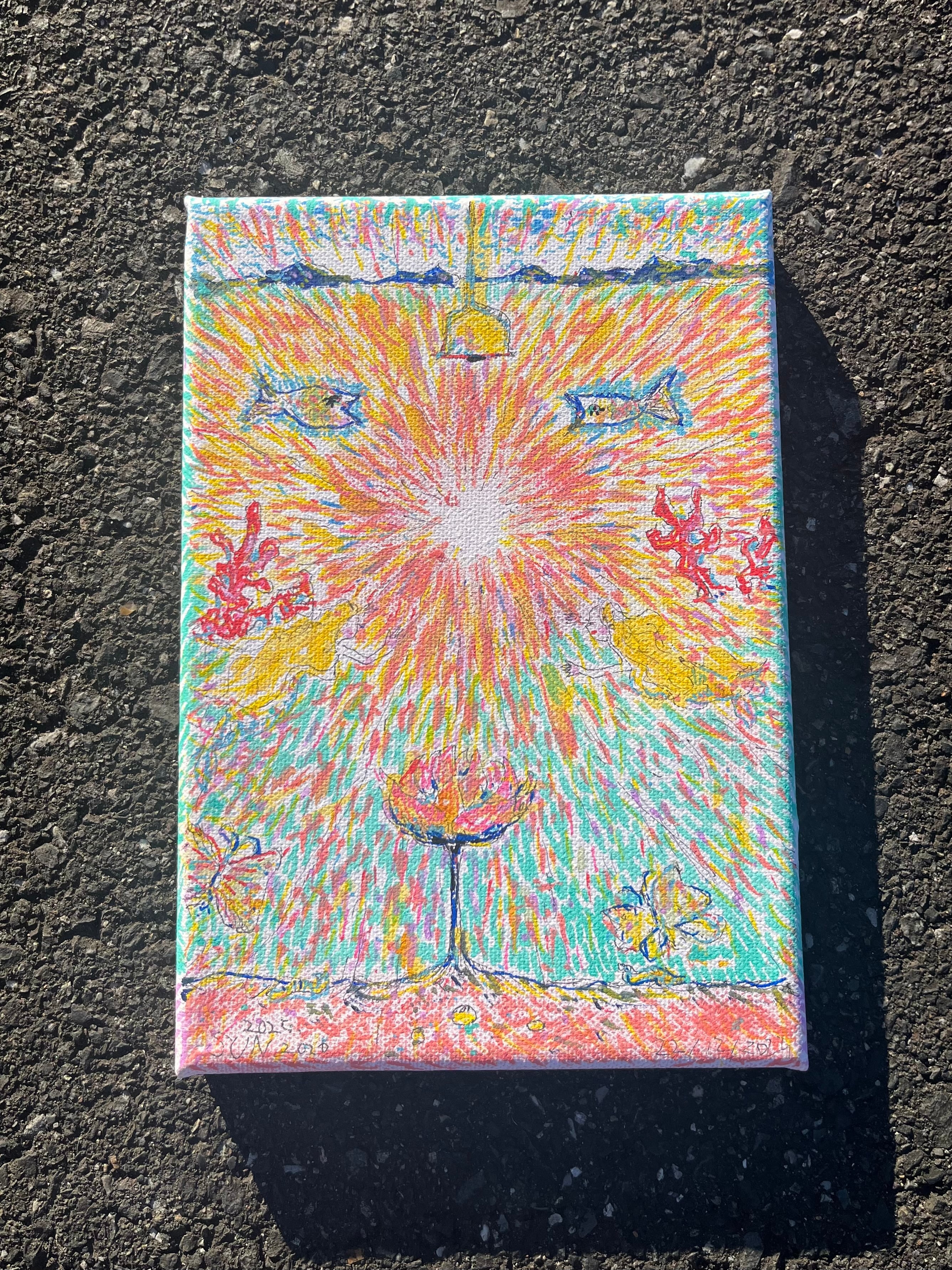 キャンバスに水彩・マーカーペン