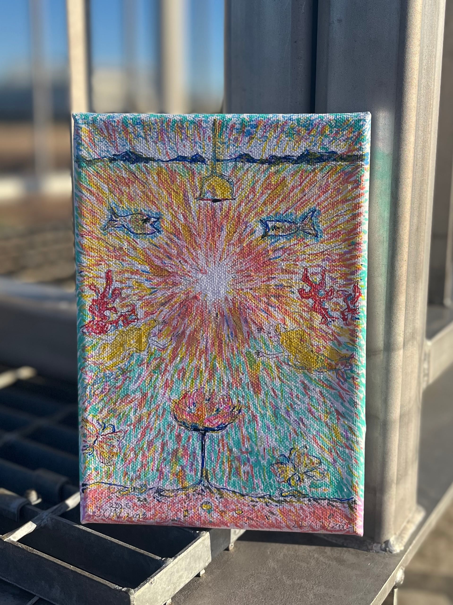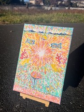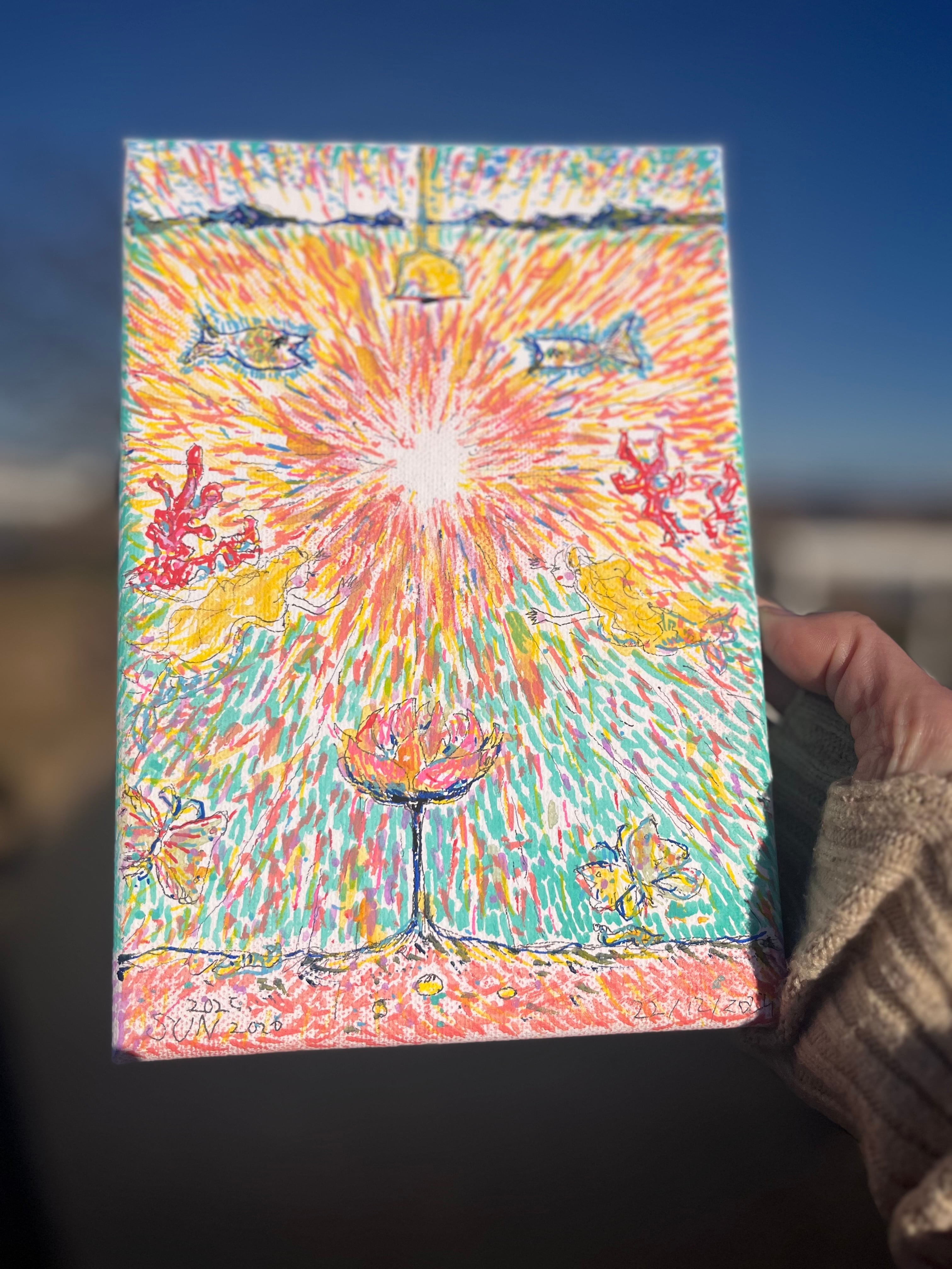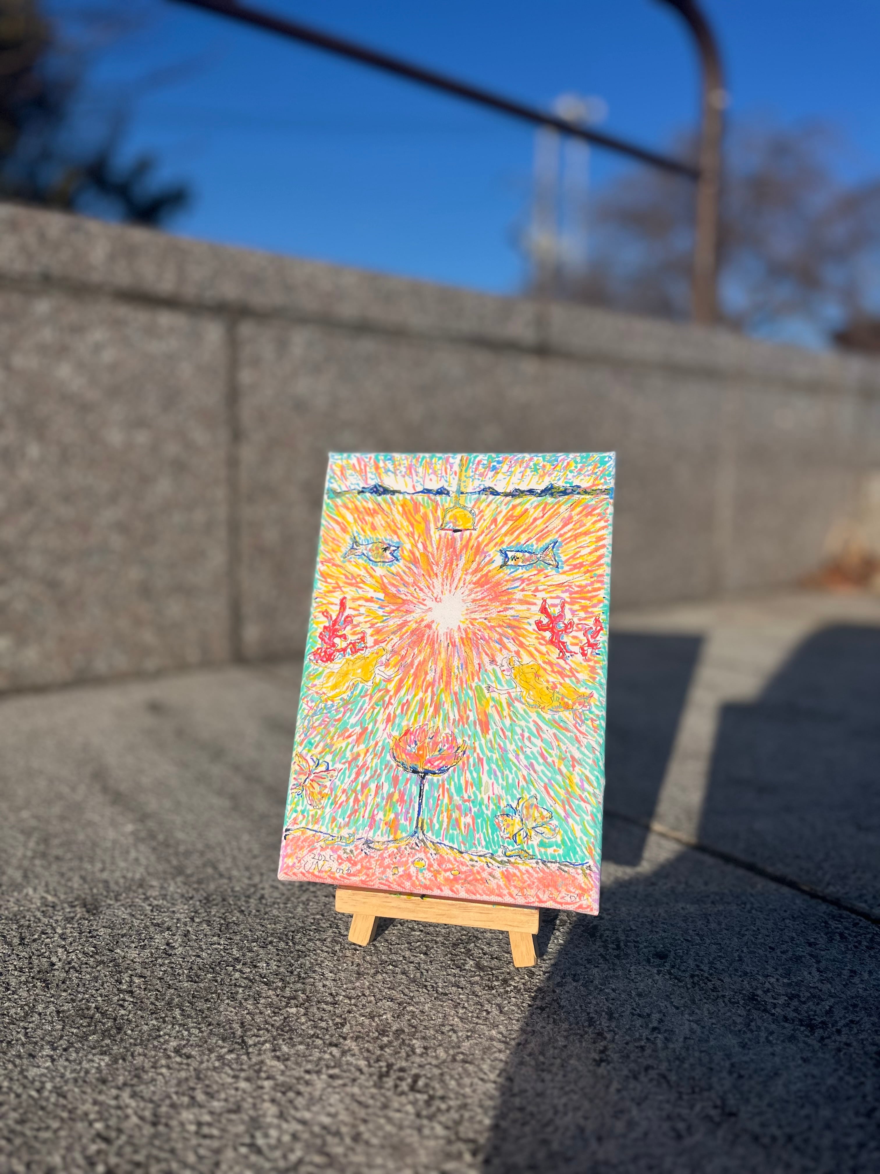 キャンバスに水彩・マーカーペン