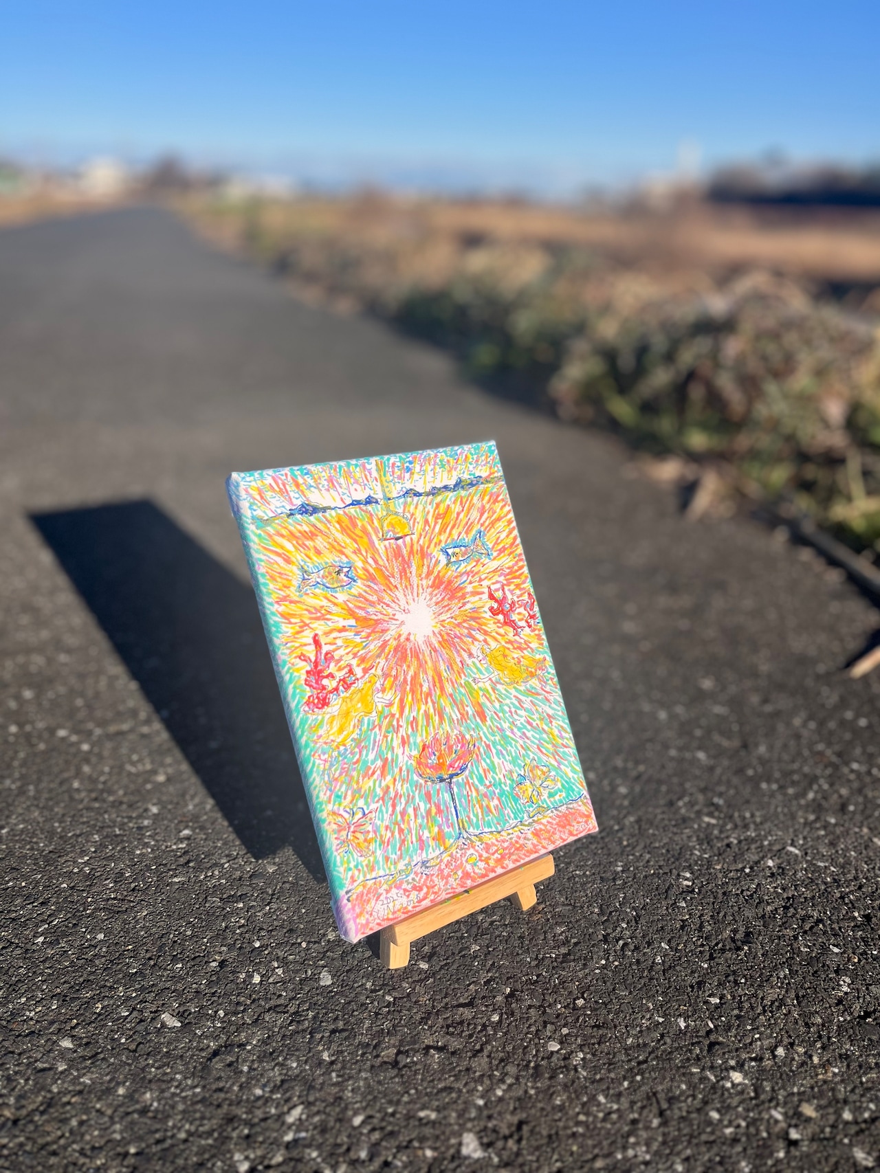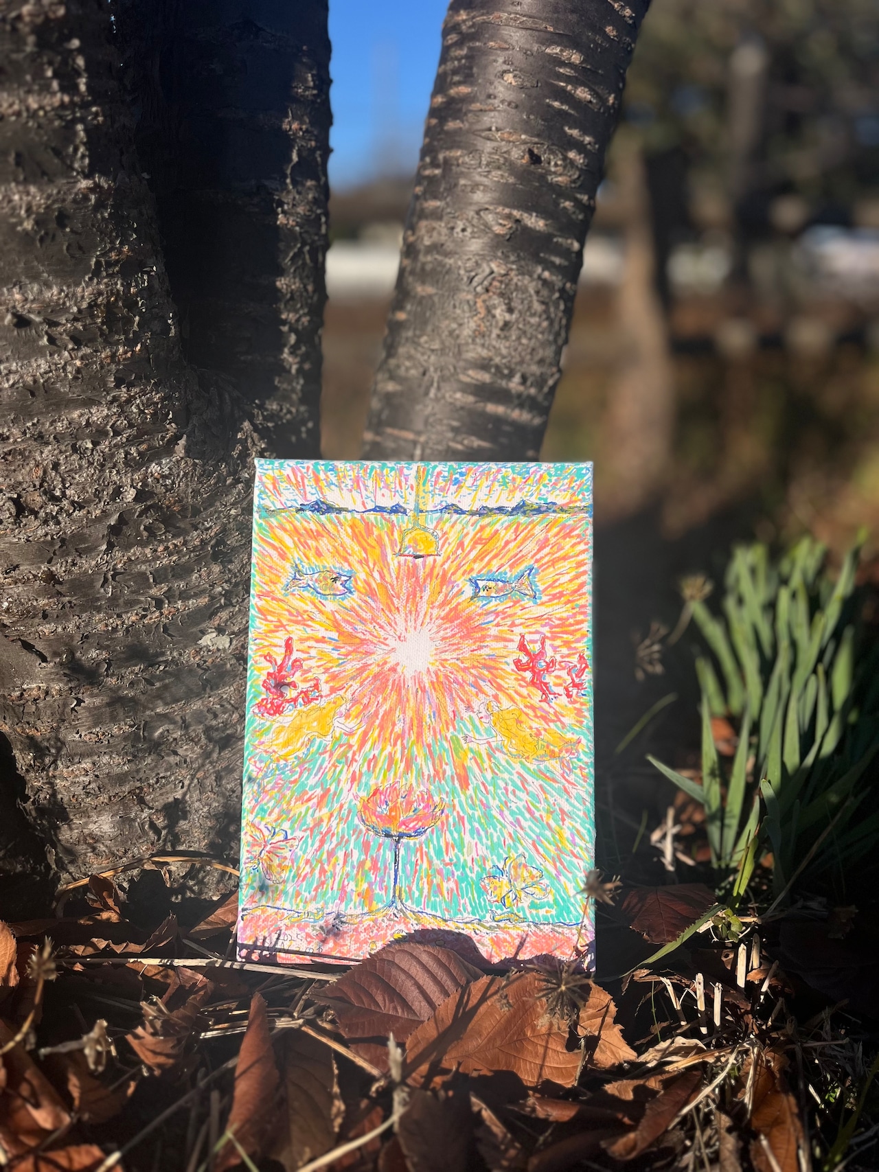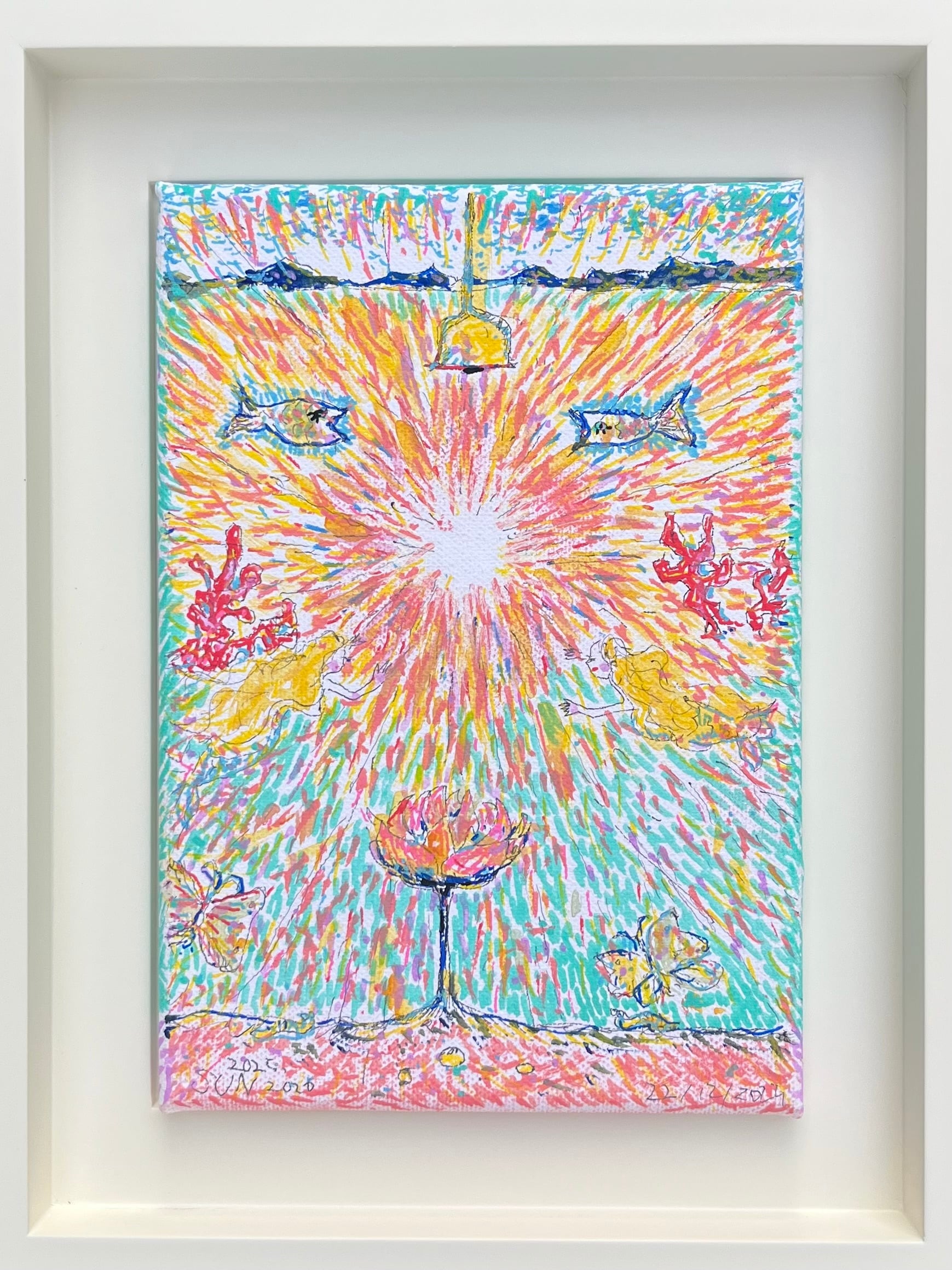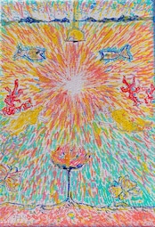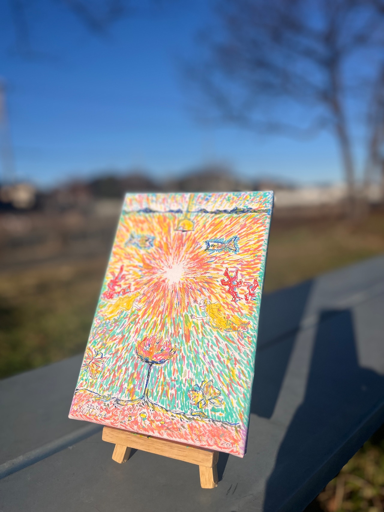 キャンバスに水彩・マーカーペン