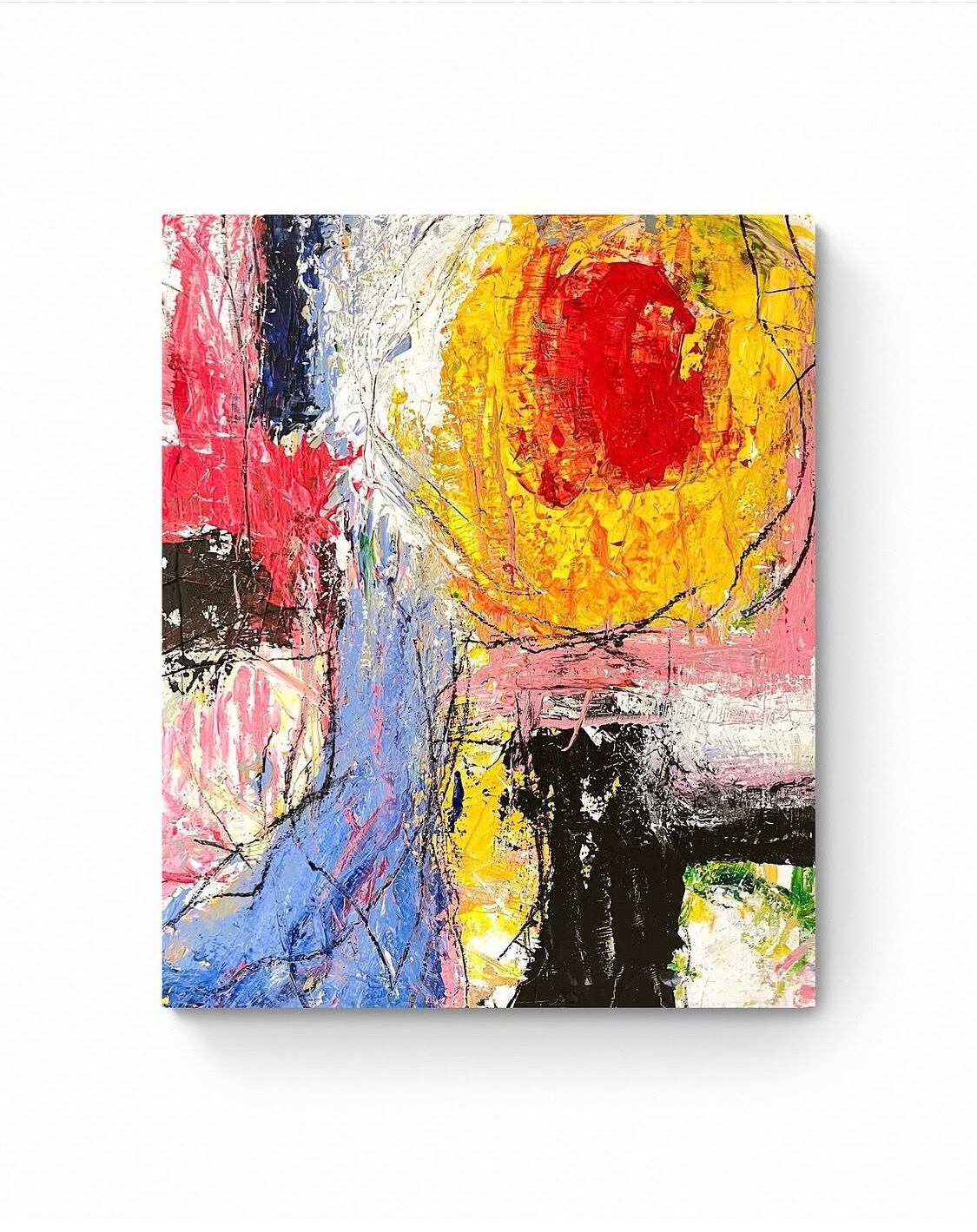 木製パネルにアクリル、クレヨン、チャコール